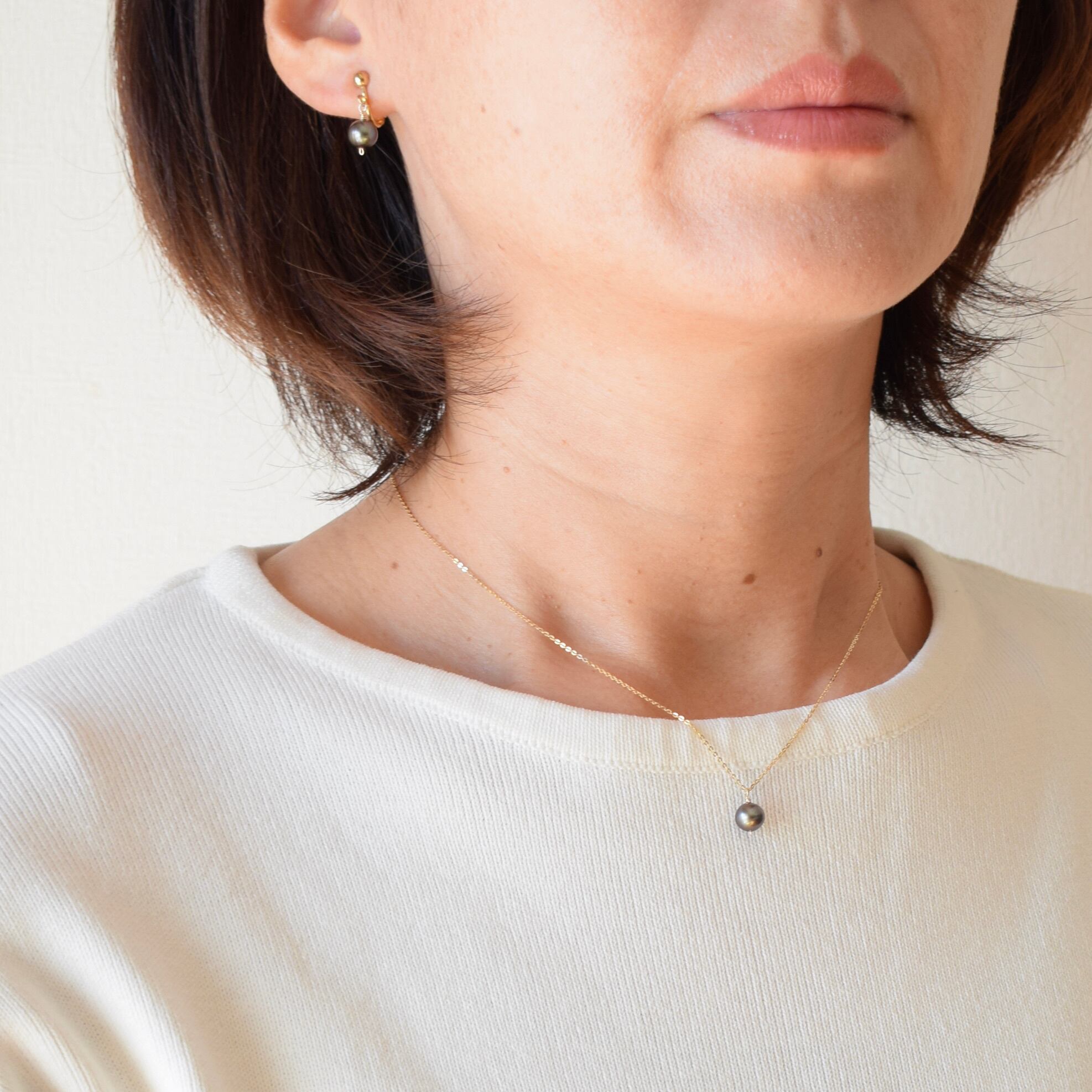 【淡水パール(ブラック)の1粒ネックレスとピアスまたはイヤリングの2点セット】